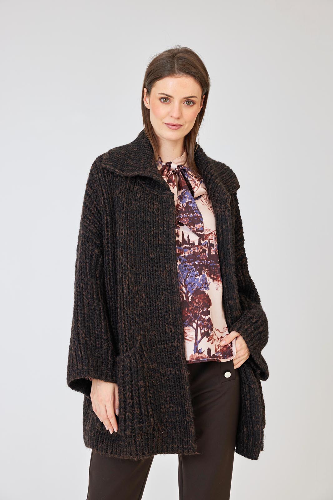 - Breiter, aufgelegter Kragen in markantem Patentstrick